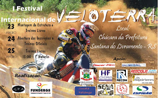 NESTE FINAL DE SEMANA DIAS 24 e 25 DE JANEIRO DE 2009 NA CHACARA DA PREFEITURA ACONTECERÁ O 1o FESTIVAL DE VELOTERRA EM LIVRAMENTO CONVIDAMOS A TODOS OS PILOTOS DA FRONTEIRA PARA MAIS UM GRANDE EVENTO DE VELOTERRA .